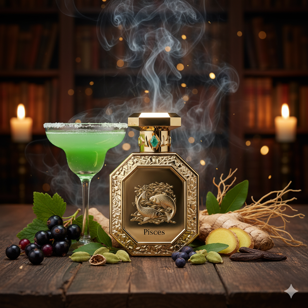 Pisces är en frisk och kryddig doft som balanserar fruktig livlighet med jordiga trätoner. Den öppnar med svartvinbär, margarita och kardemumma, följt av ett hjärta av enbär och ingefära. Basen rundas av med varma och maskulina toner av patchouli, tonkaböna och vetiver, vilket lämnar ett sofistikerat och minnesvärt spår.