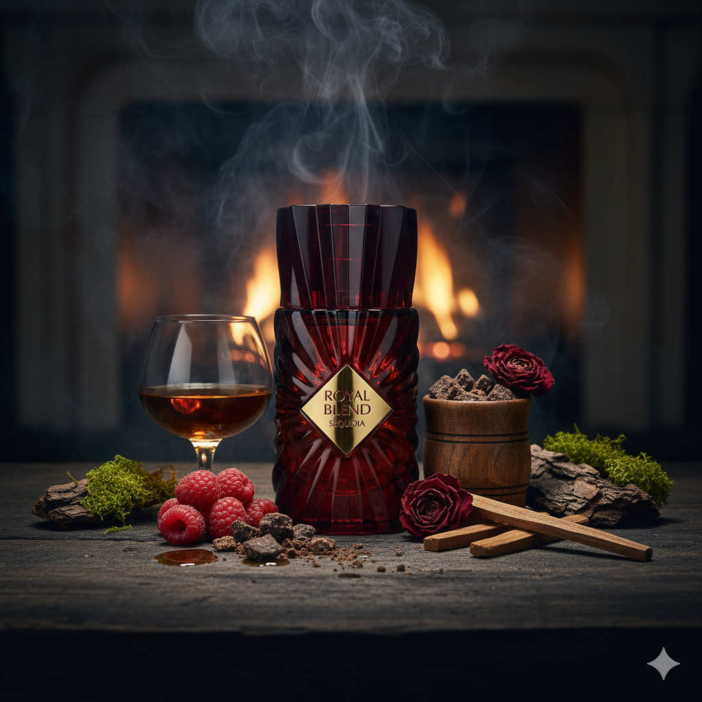 Royal Blend Sequoia är en djup och förförisk doft som förenar fruktig intensitet med träig elegans. Den öppnar med fylliga toner av hallon, likör och cognac, innan hjärtat avslöjar en sofistikerad balans av ros och mossa. Basen förankrar doften i en rik harmoni av praliné, ek och sandelträ – varmt, kraftfullt och tidlöst.